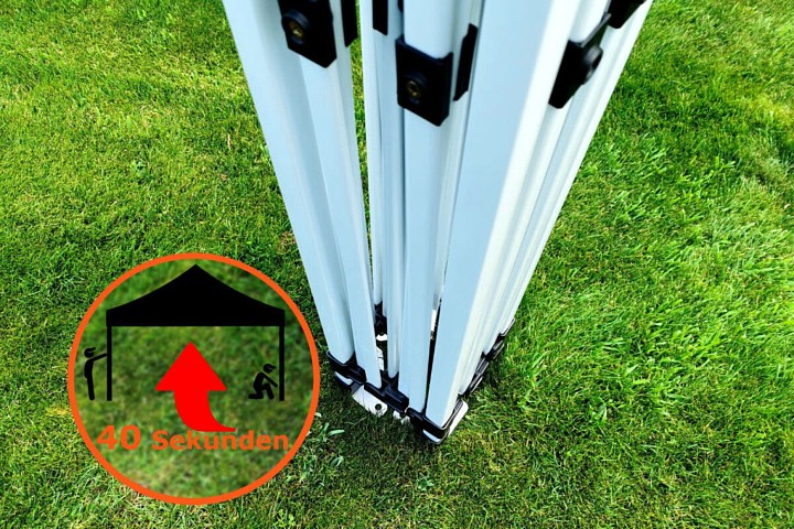 Den simple automatiske konstruktion med skrueforbindelser sikrer nem opsætning af teltet. Når det er foldet sammen, fylder det lidt og kan nemt transporteres i bilen. Pakken indeholder en beskyttelsespose til konstruktionen, som beskytter teltet under opbevaring. Der findes mange lignende telte på markedet, men vi producerer og sælger kun mærkevarer, ikke billige kopier.