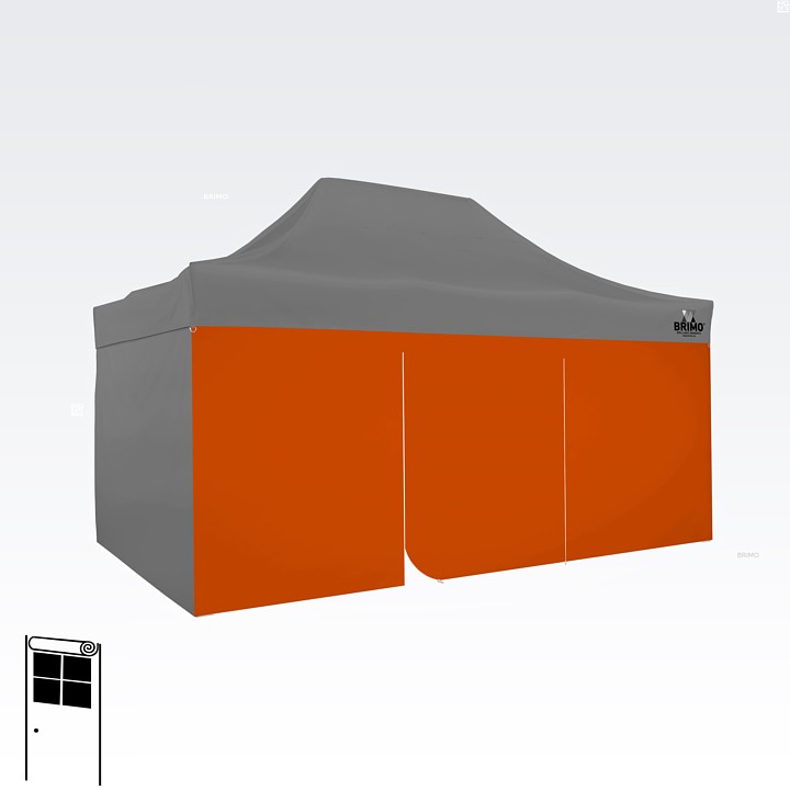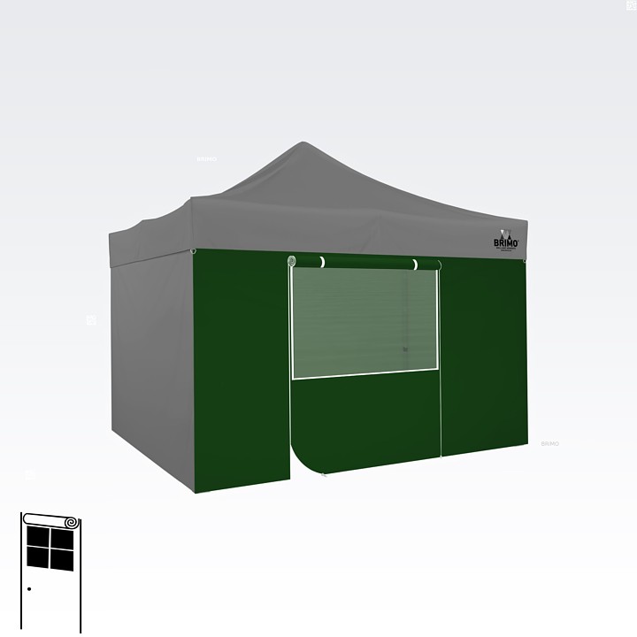 Denne multifunktionelle væg lukker dit telt helt. Standardteltet leveres med tre fulde vægge i samme farve som teltdugen. Du kan også vælge en fjerde væg i den farve, du har brug for. Væggen kan bruges som fuld væg, væg med vindue eller som indgang til teltet takket være lynlåsdøren.