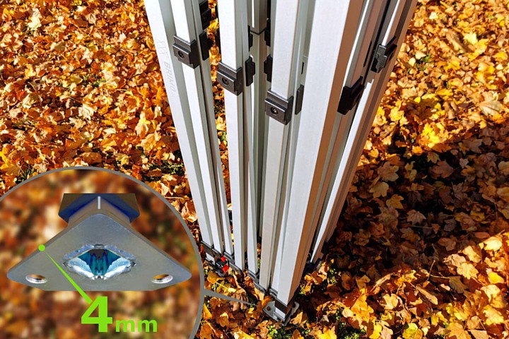 Promotions-teltet håndterer vejret bravt. Det står på solide ben med brede fødder. Hvert ben har to huller til hurtig forankring. Teltet skal altid forankres. Jordankre er inkluderet. Hurtig opsætning, fremragende præsentation, nem transport – sådan opsummerer vi det mest populære salgstelt.
