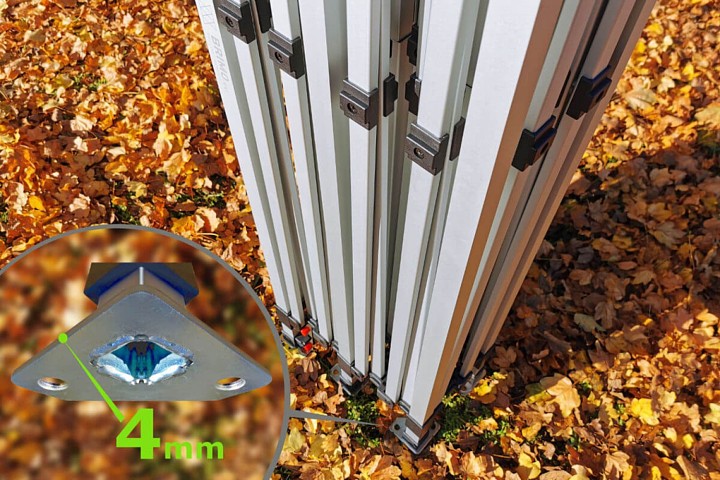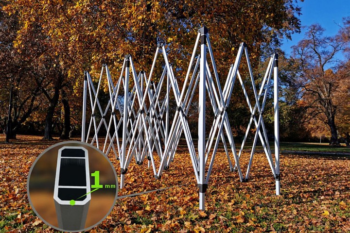 Det moderne design vil tilfredsstille dig. Aluminiumsrammen er ultralet, og teltet er nemt at transportere. Med det automatiske opstillingssystem kan teltet 3x6m nemt foldes op og ned hvor som helst. Ingen ekstra værktøj er nødvendigt. De enkelte dele kan nemt udskiftes takket være skrueforbindelser.