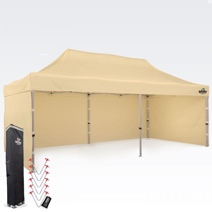 - Pakkens indhold: tag, 3 hele vægge, robust konstruktion, 12 forankringspløkker og beskyttelseshylster. Du får således et komplet sæt, der er klar til brug med det samme og til sikker opbevaring.