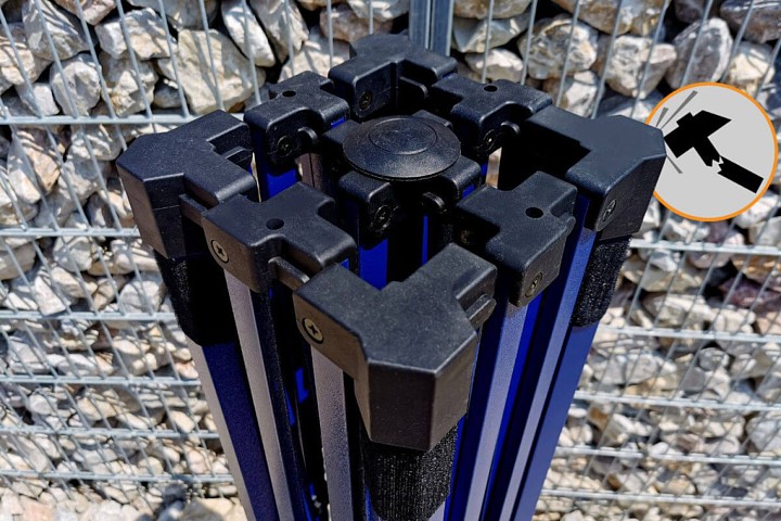 Den mørkeblå farve på konstruktionen giver teltet et elegant udseende. At skille sig ud fra konkurrenterne er en vigtig faktor for din forretnings succes. Teltet er populært på markedet på grund af sin fleksibilitet. Stærke stålrør sikrer maksimal stabilitet. Teltet sættes op og pakkes ned på rekordtid!