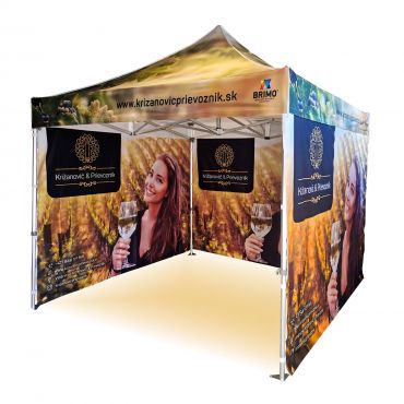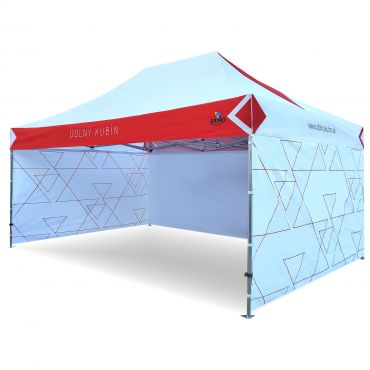 Reklameskure med digital sublimationsprint. Trykket udføres via en kemisk proces, hvor blækket trænger direkte ind i stoffets struktur under høje temperaturer. Logo, tekst eller enhver form for grafik på indersiden eller ydersiden af skuret efter kundens ønske.