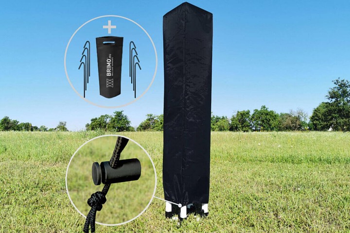 - Model Exclusive stål, kan bruges i vind op til 50 km/t. Ben med huller til forankring i jorden med pløkker - gratis!