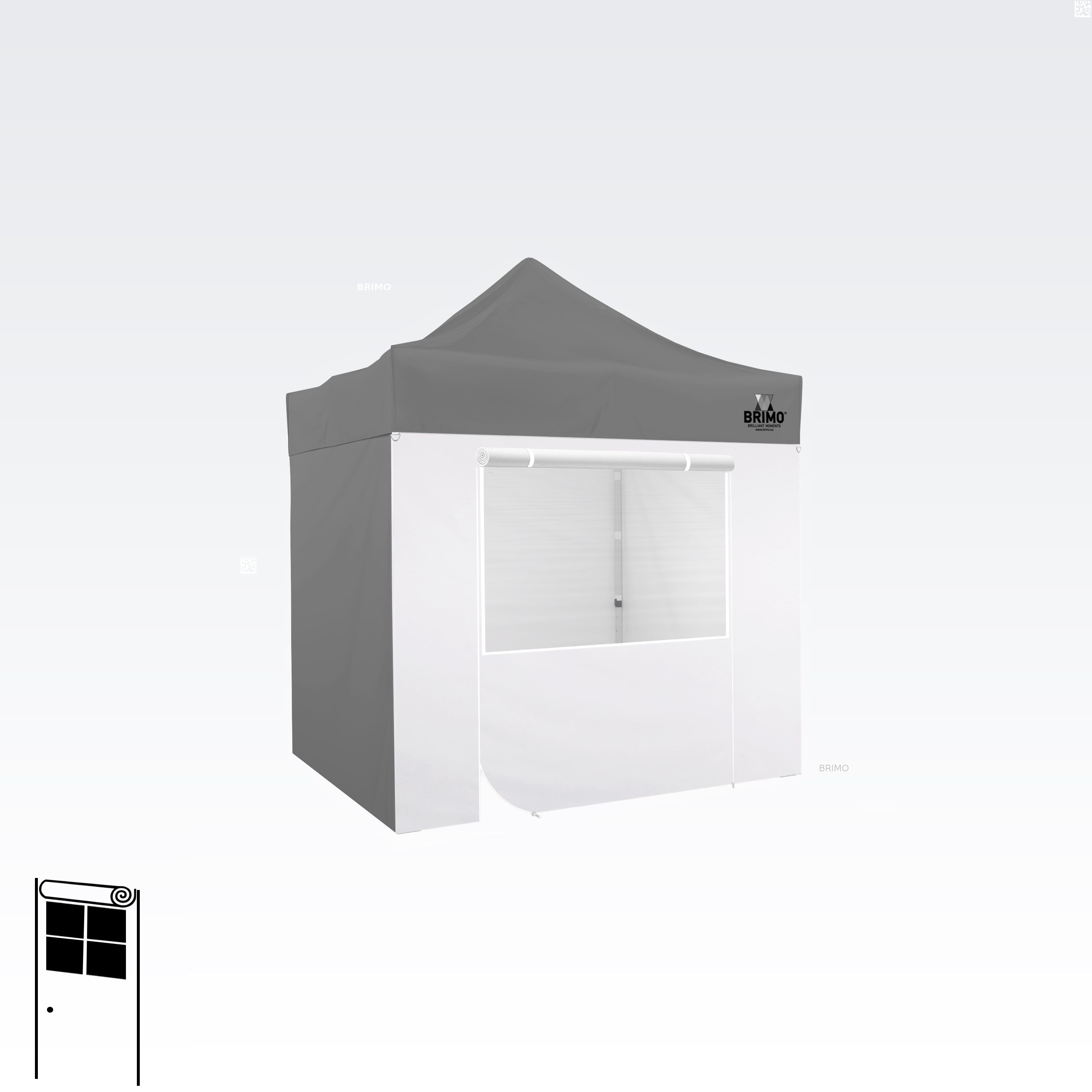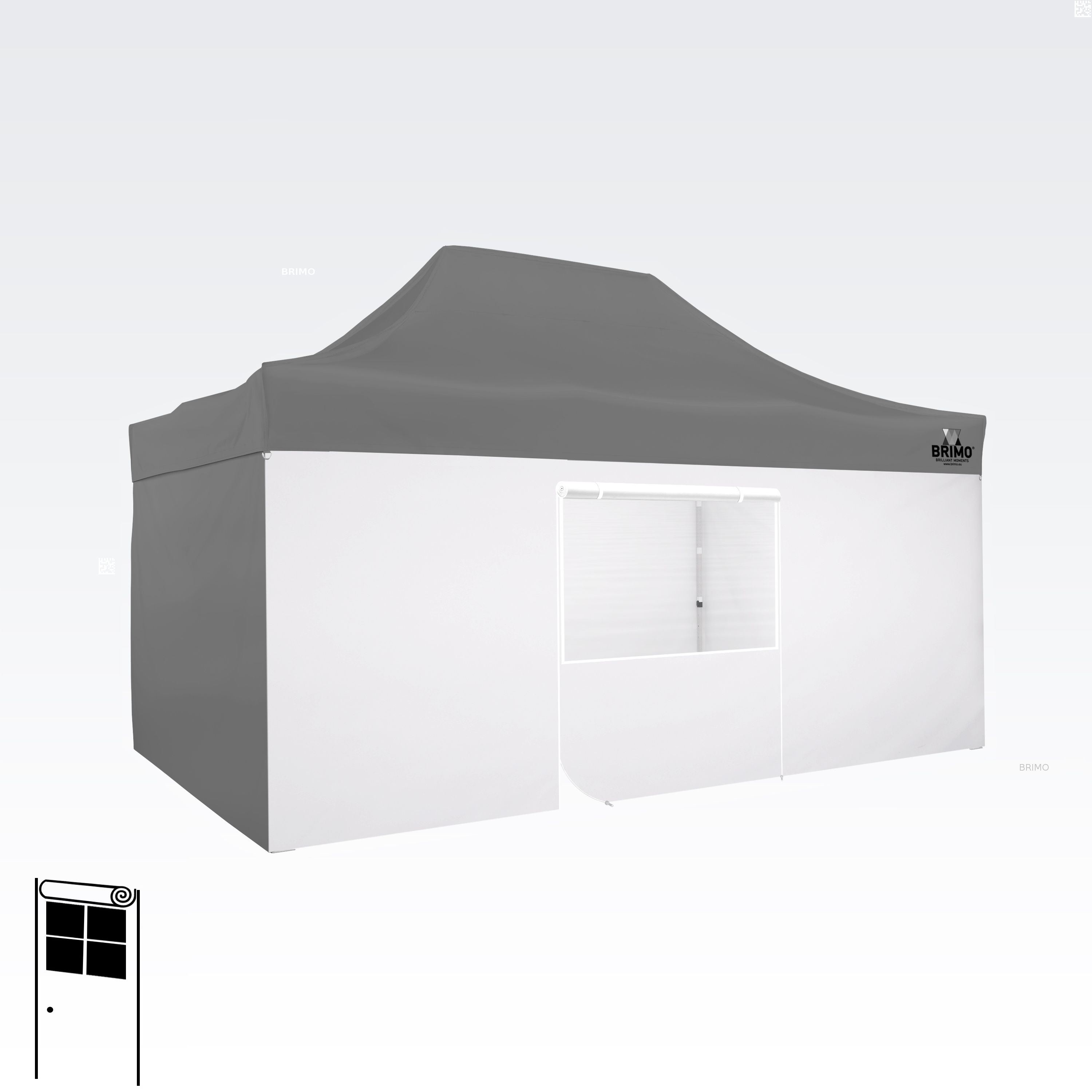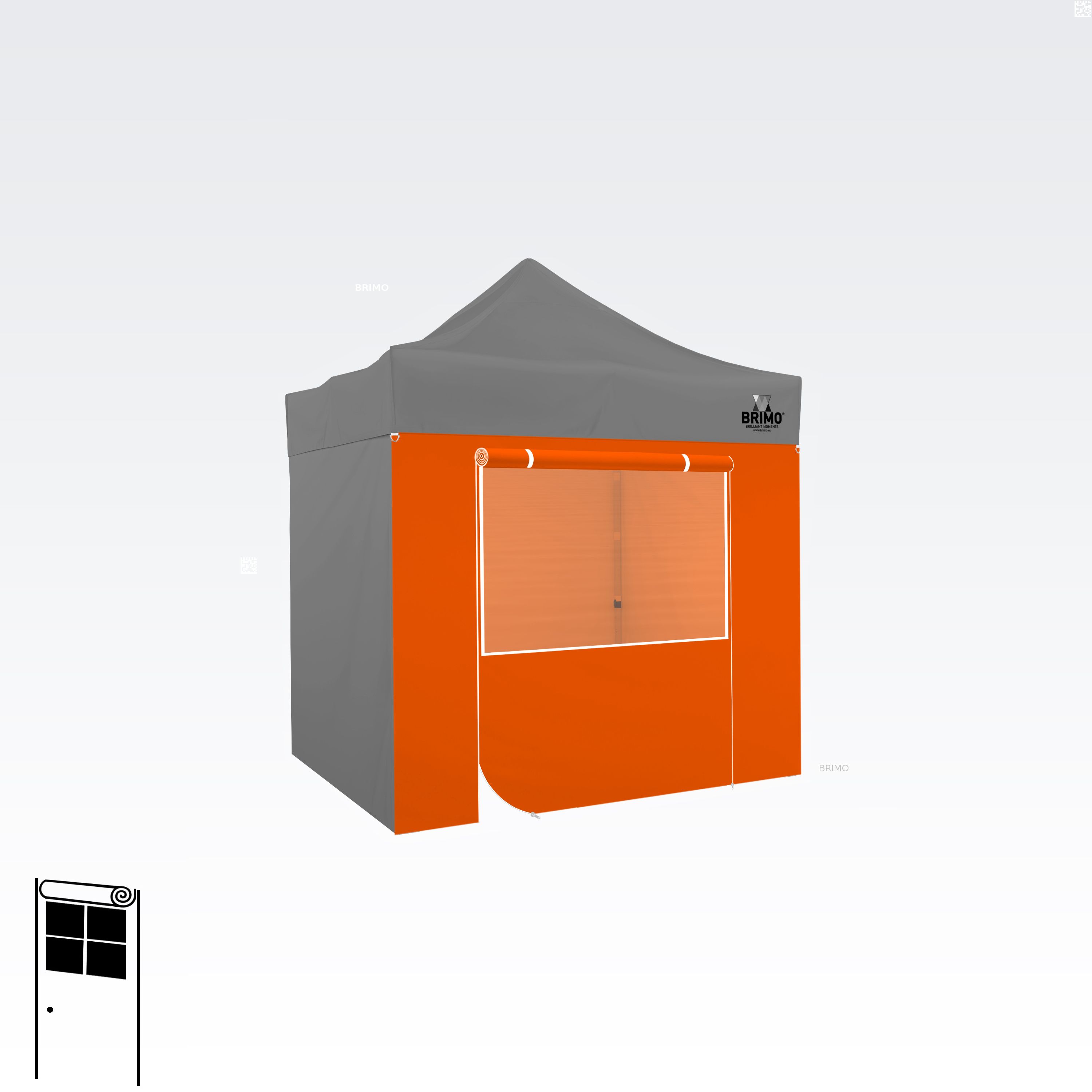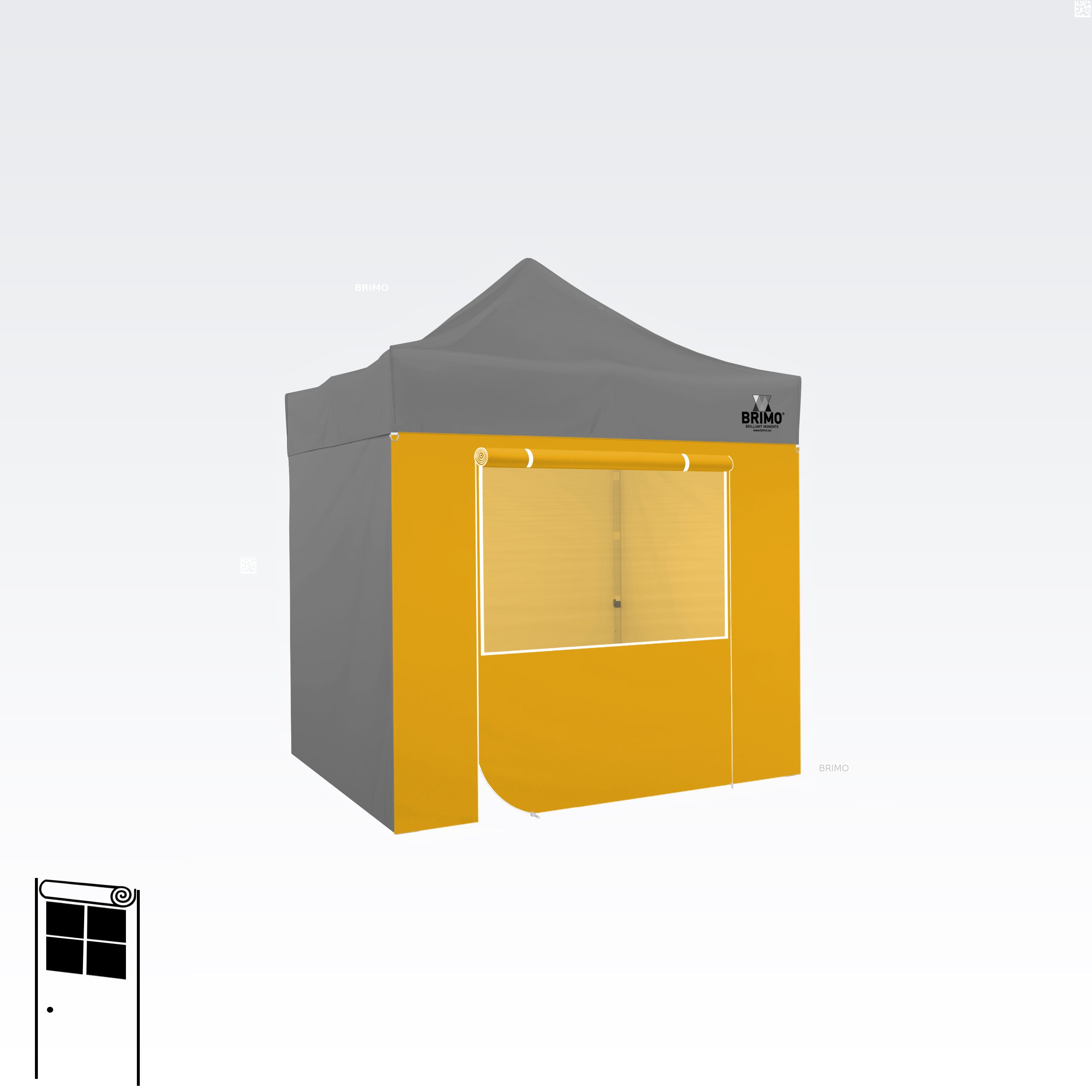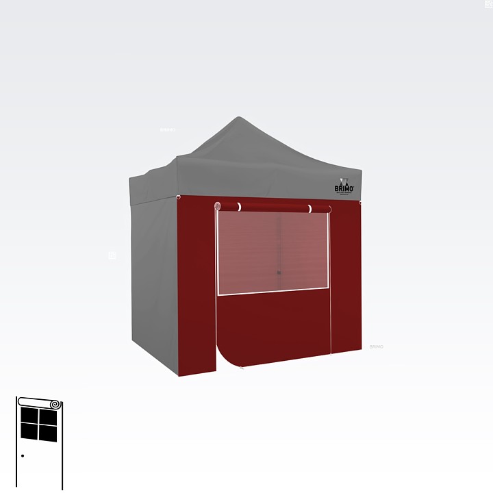 Denne multifunktionelle væg lukker dit telt helt. Standardteltet leveres med tre fulde vægge i samme farve som teltdugen. Du kan også vælge en fjerde væg i den farve, du har brug for. Væggen kan bruges som fuld væg, væg med vindue eller som indgang til teltet takket være lynlåsdøren.