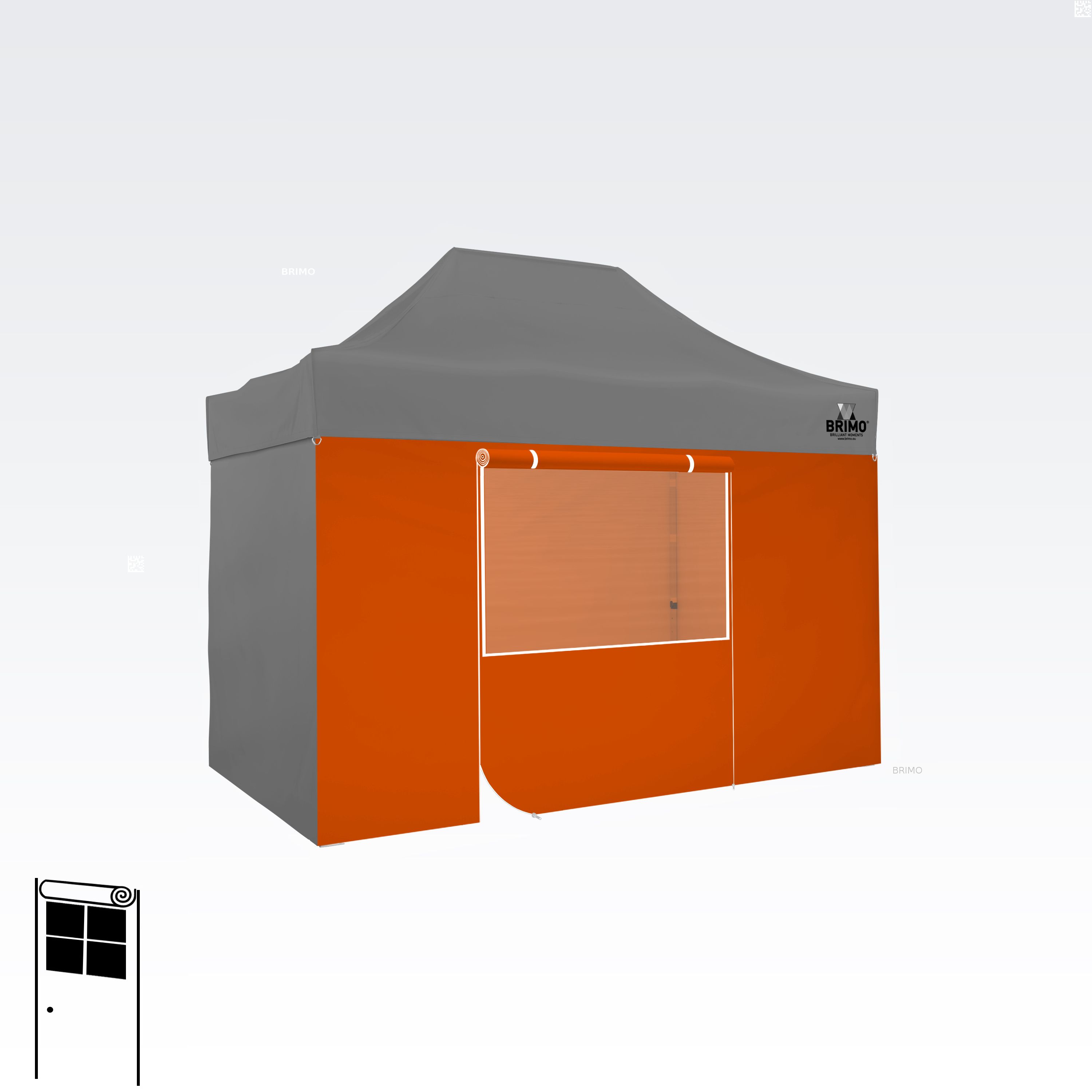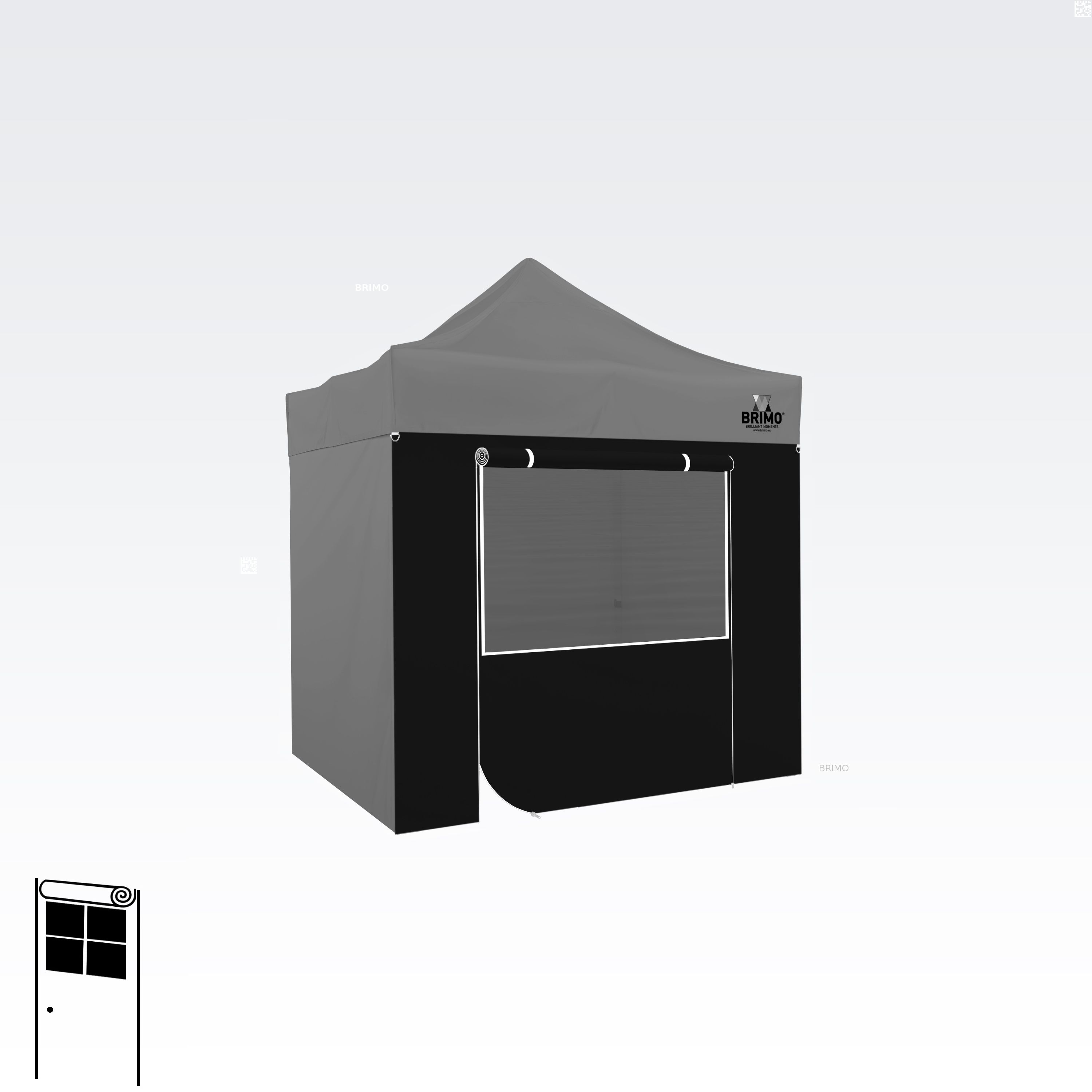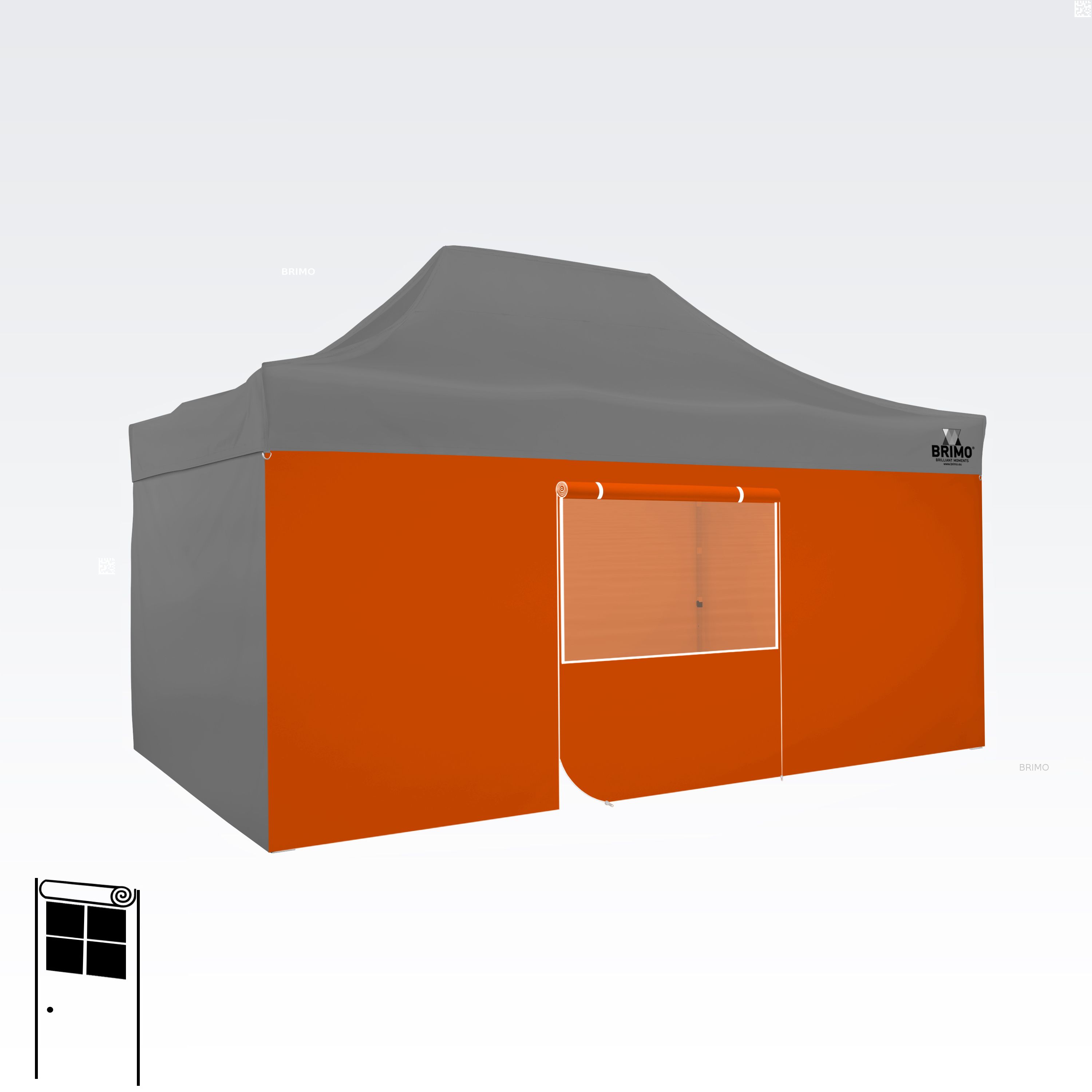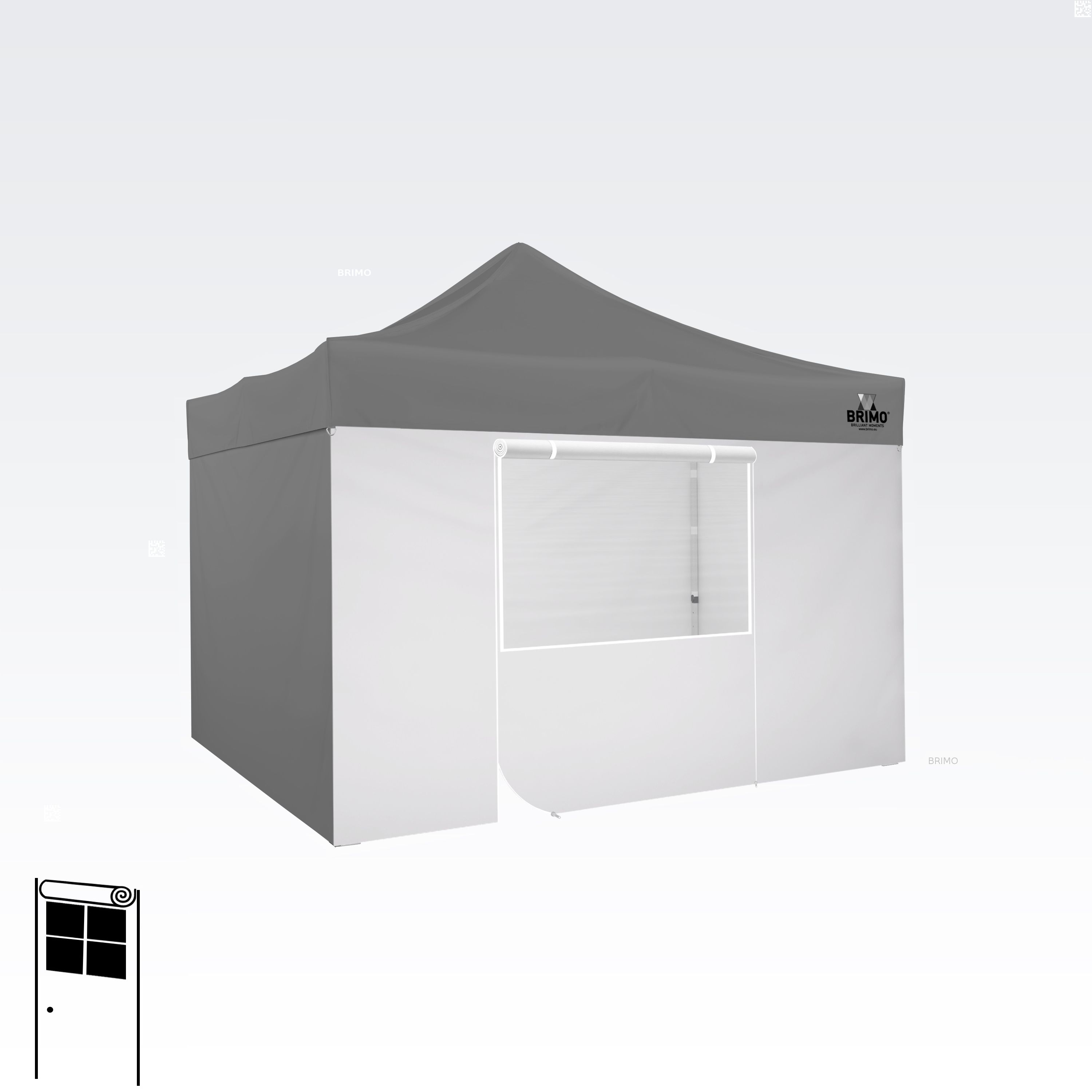 Denne multifunktionelle væg lukker dit telt helt. Standardteltet leveres med tre fulde vægge i samme farve som teltdugen. Du kan også vælge en fjerde væg i den farve, du har brug for. Væggen kan bruges som fuld væg, væg med vindue eller som indgang til teltet takket være lynlåsdøren.