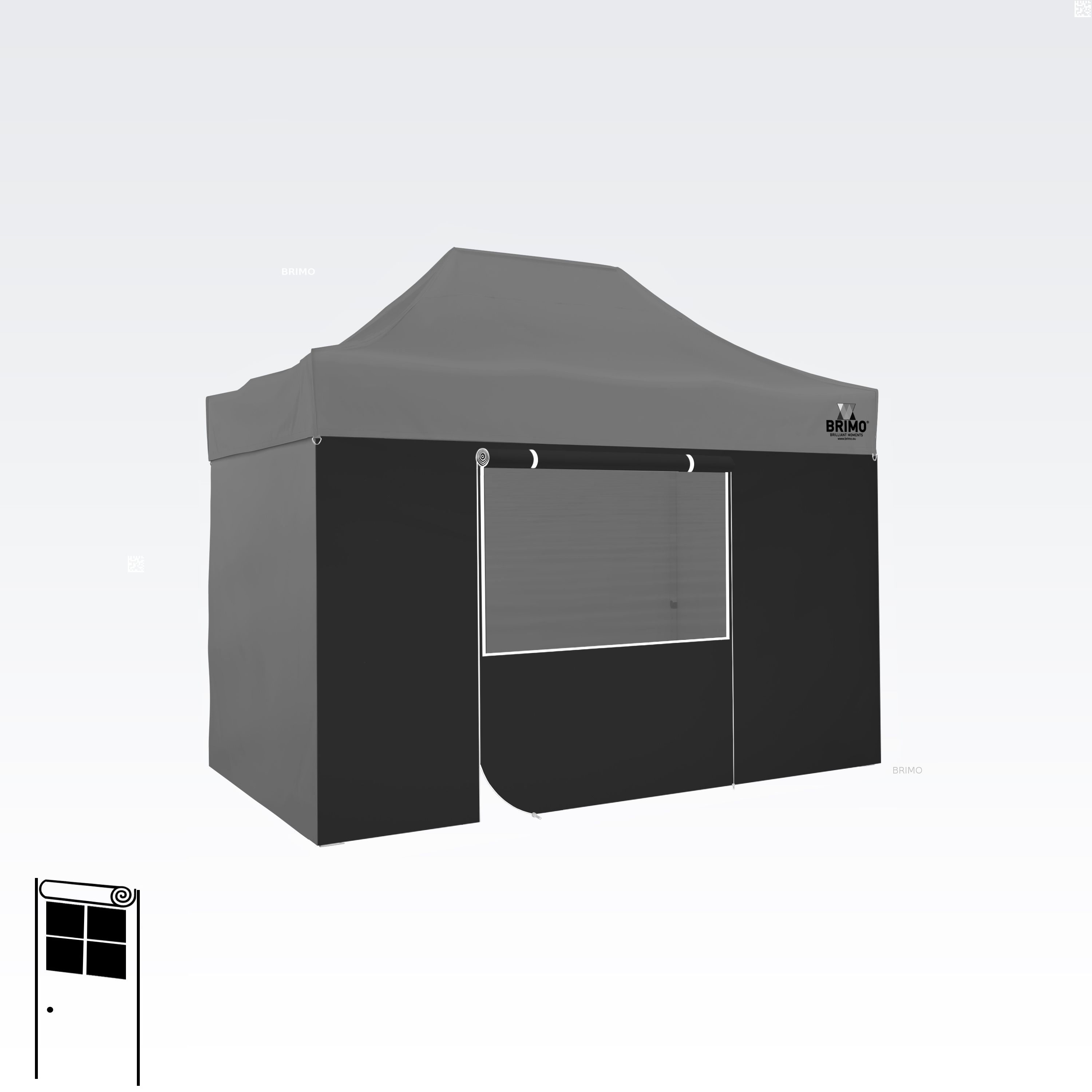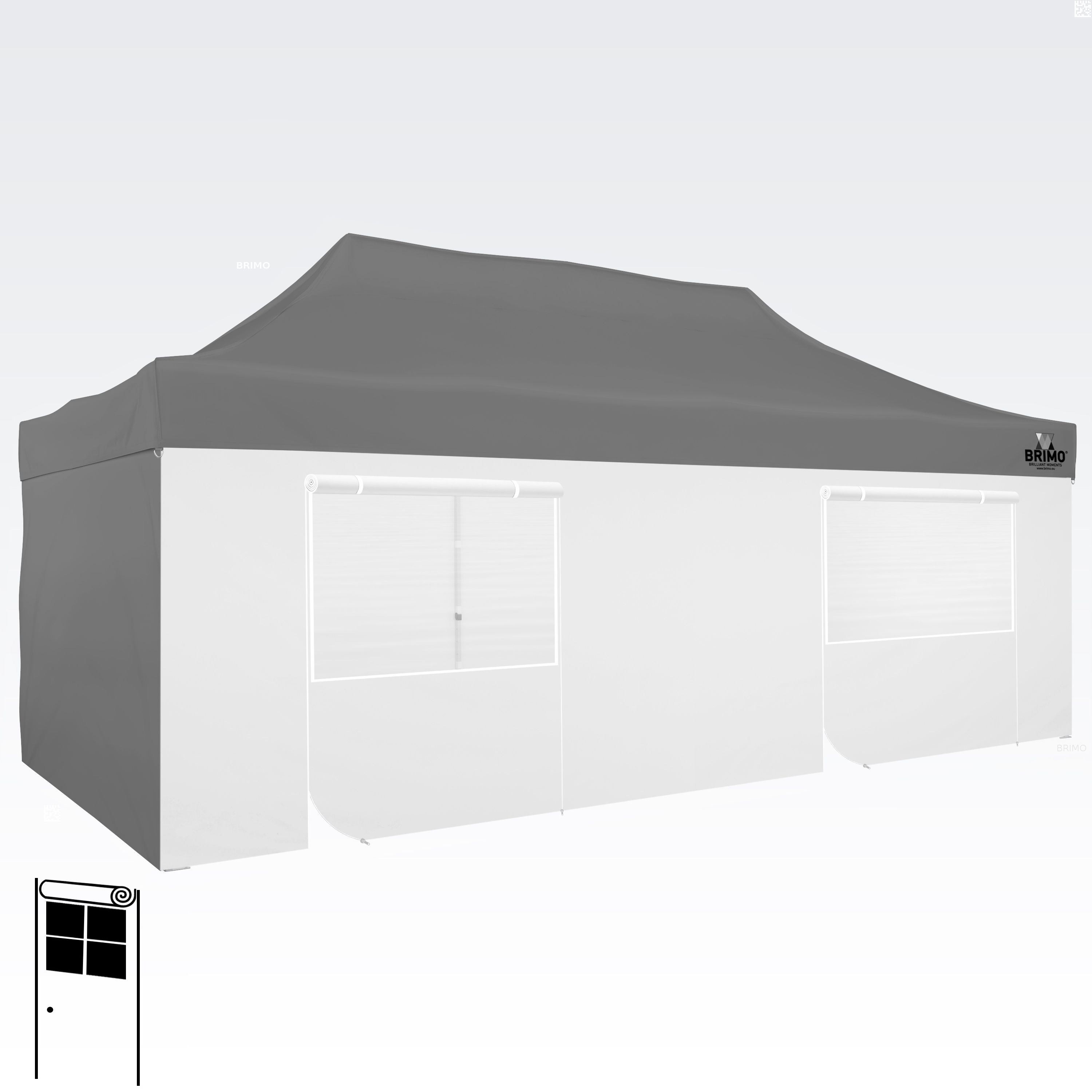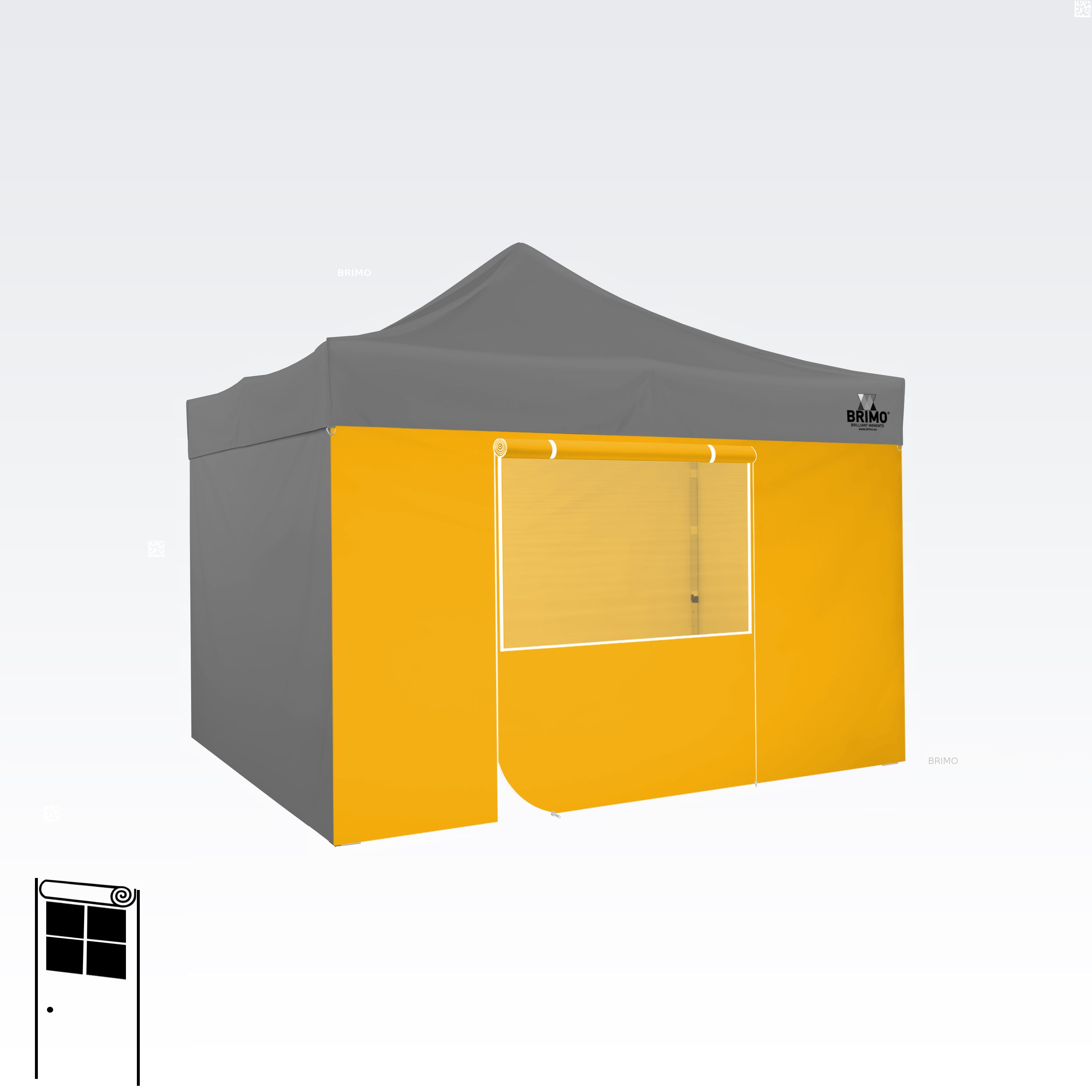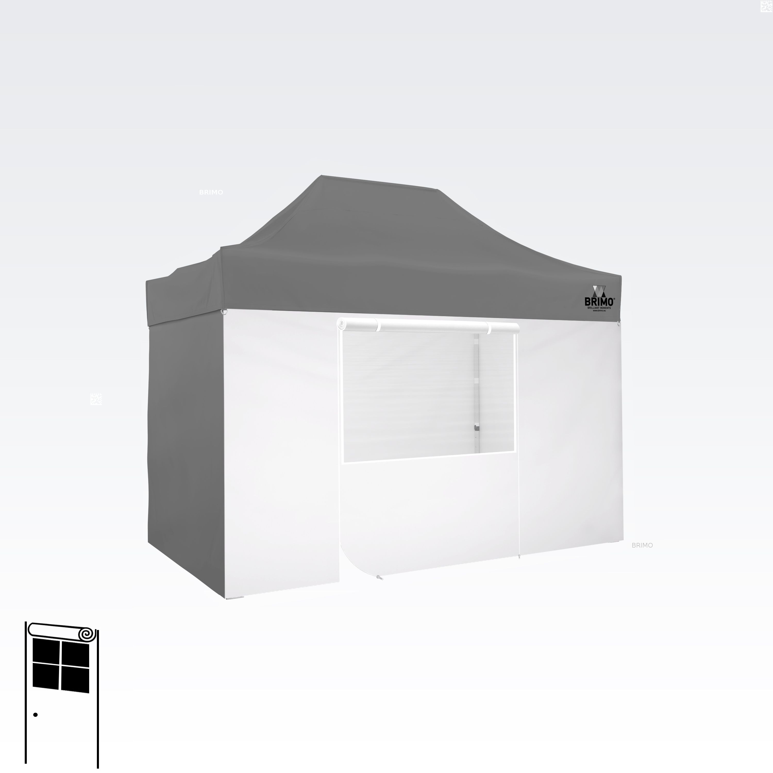 Denne multifunktionelle væg lukker dit telt helt. Standardteltet leveres med tre fulde vægge i samme farve som teltdugen. Du kan også vælge en fjerde væg i den farve, du har brug for. Væggen kan bruges som fuld væg, væg med vindue eller som indgang til teltet takket være lynlåsdøren.
