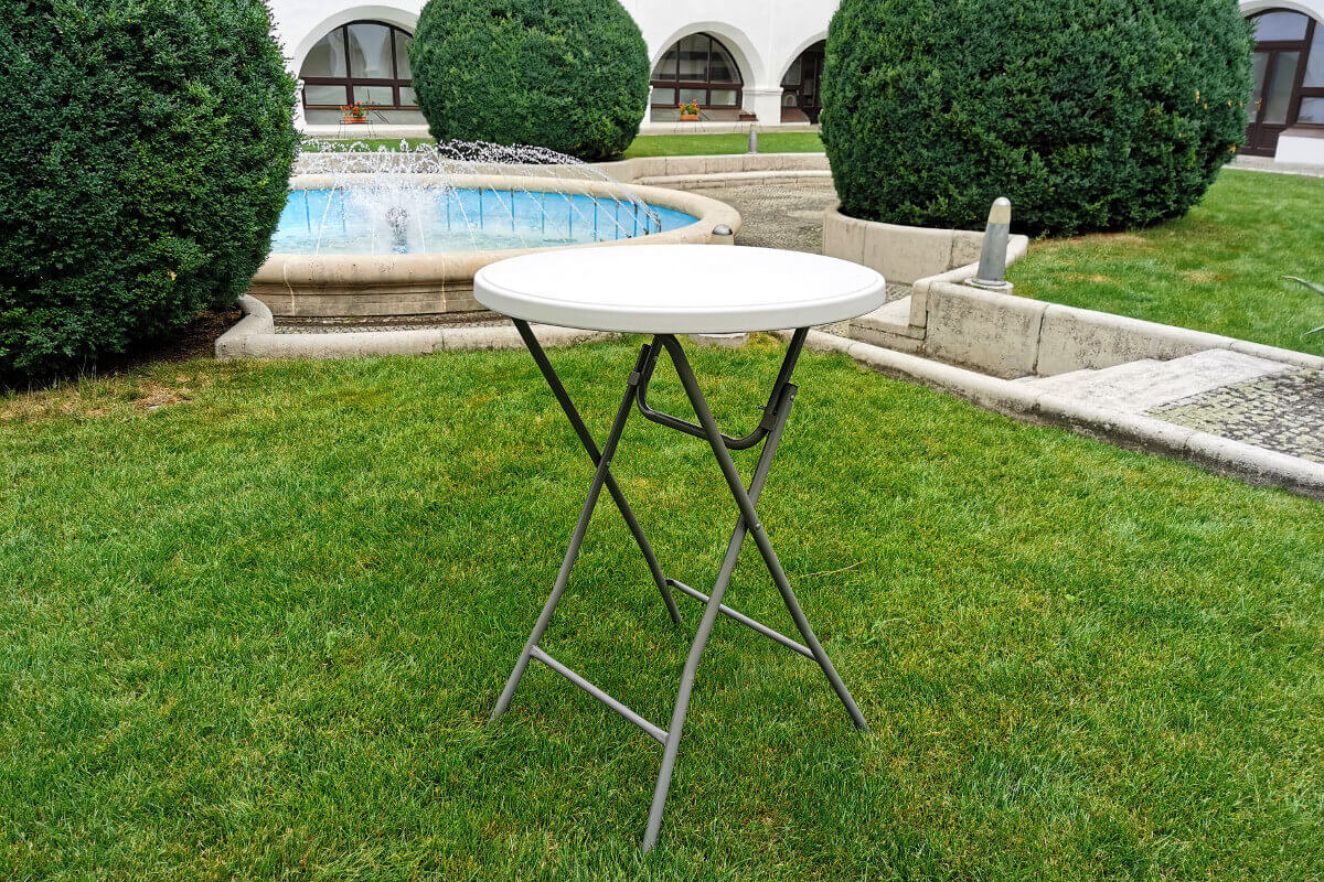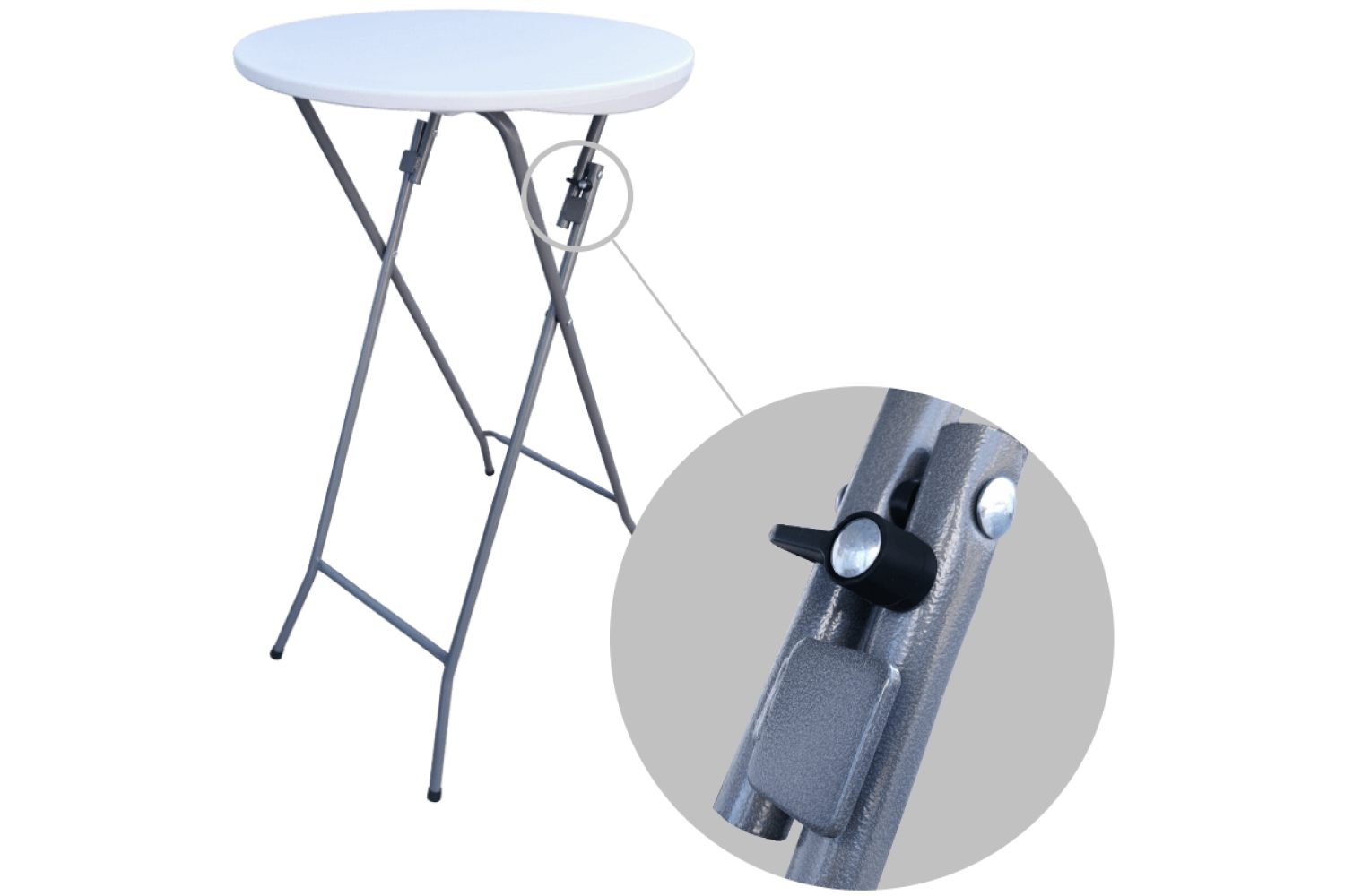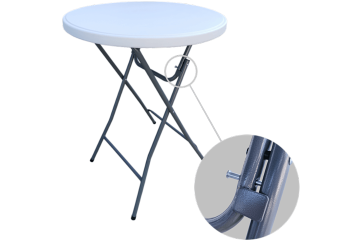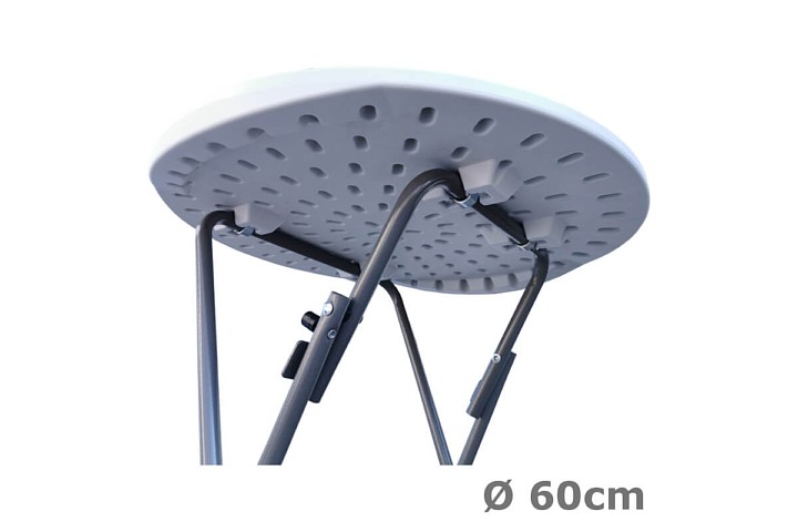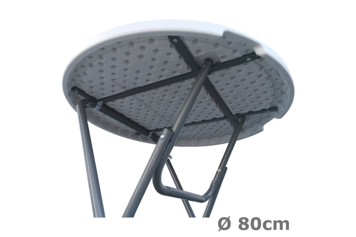 Den foldbare plastbord med rund top på 80 cm / 60 cm er lavet af meget stærk HDPE-plastik, som ikke gulner. En af de største fordele ved dette foldbare barbord er det sekundsnelle opsætning, fantastisk styrke og stabilitet.