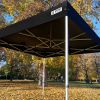 Promotions-teltet håndterer vejret bravt. Det står på solide ben med brede fødder. Hvert ben har to huller til hurtig forankring. Teltet skal altid forankres. Jordankre er inkluderet. Hurtig opsætning, fremragende præsentation, nem transport – sådan opsummerer vi det mest populære salgstelt.