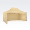 Promotions-telte 3x4,5m er ideelle til tryk, hvilket gør dem til de mest populære præsentationstelte. Den åbne front på 4,5 m giver rigelig plads til salg af varer. Takket være tætvævet, vandtæt polyesterstof og PVC-lag, der giver fremragende skygge, vil sollys hverken beskadige eller ødelægge dine varer under teltet.