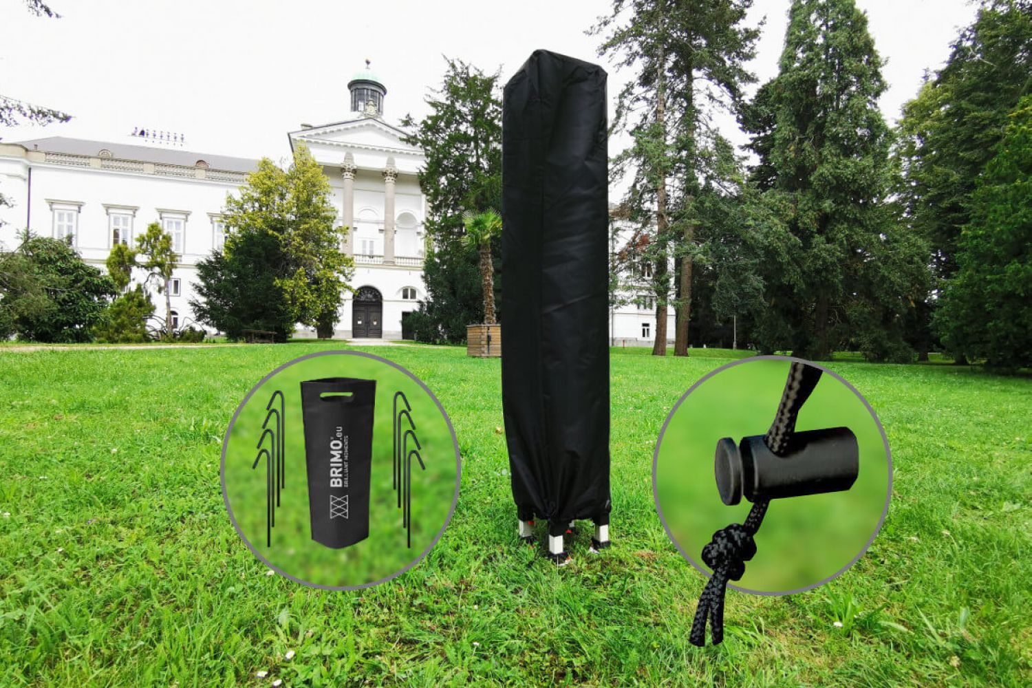 - Tagmateriale: 100% vandtæt polyester (350 g/m²) med PVC-belægning. Det er ekstremt rivefast, beskytter mod UV-stråler og garanterer pålidelig beskyttelse mod både regn og sol.