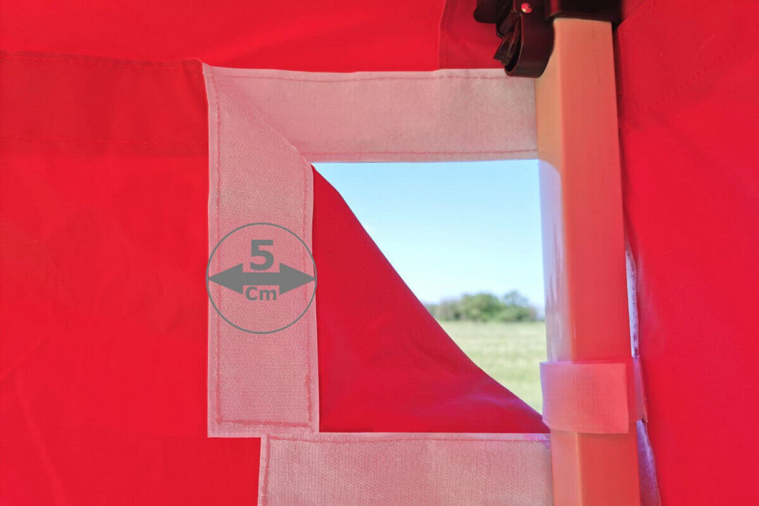 Tagdugen og sidevæggene er fremstillet af tætvævet polyesterstof 330 g/m2 med et indvendigt PVC-lag. Denne kombination garanterer, at hverken vedvarende regn eller skarp sol vil ødelægge dit arrangement. Sidevæggene fastgøres nemt til taget med velcrolukning, og hver væg kan tages af separat for maksimal fleksibilitet.