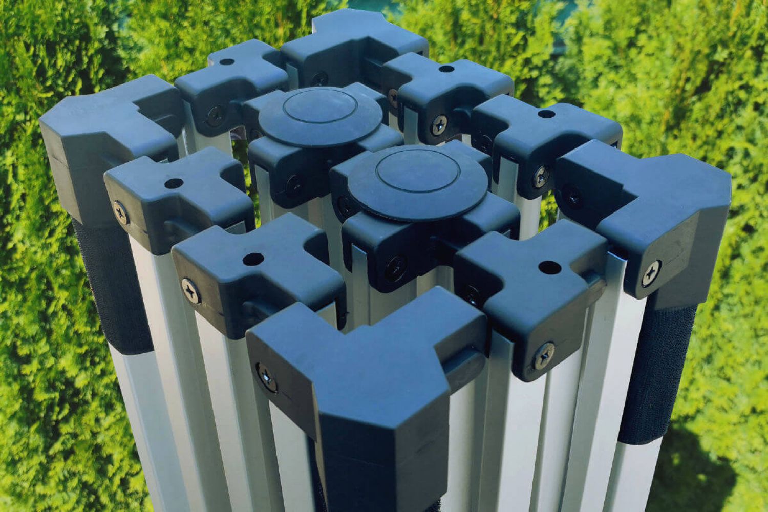 Trods sin lave vægt rangerer EXCLUSIVE aluminiumsteltet blandt de stærkeste på markedet. Det er fremstillet af tykvæggede aluminiumsprofiler, der perfekt håndterer vejrets udfordringer. Hver komponent er blevet omhyggeligt testet for at give dig et produkt, du kan stole på i mange år. Som bekræftelse på kvaliteten får du en ekstraordinär fem års garanti ved køb.