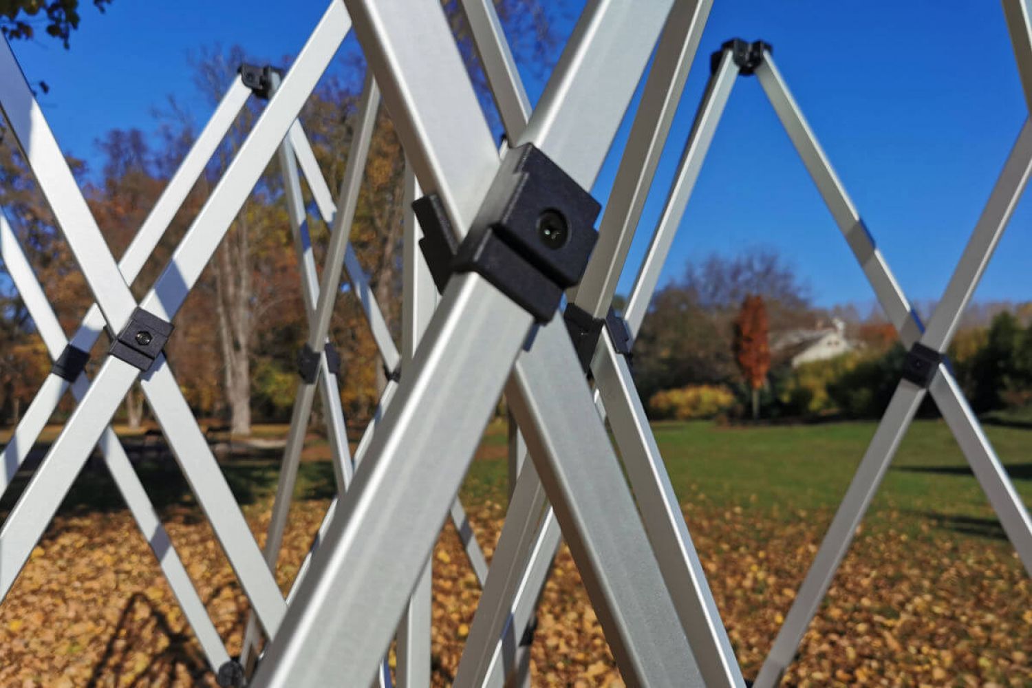 Reklameteltet kan bruges både udendørs og indendørs. Undlad ikke at sikre teltet. Det skal altid sikres uanset vejret. Pakken indeholder barduner til fastgørelse. Hvis du opstiller teltet på en hård overflade, kan du bruge stålvægte eller sække med sand. Som ekstra fastgørelse bruger kunderne reb med barduner, som også kan bestilles som tilbehør til teltet.