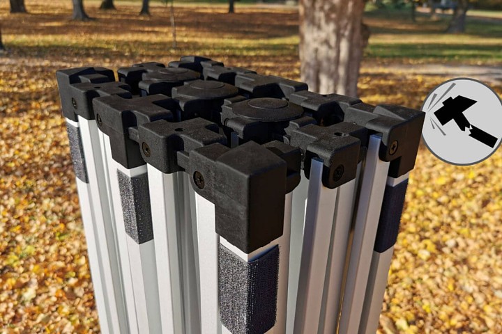 Det moderne design vil tilfredsstille dig. Aluminiumsrammen er ultralet, og teltet er nemt at transportere. Med det automatiske opstillingssystem kan teltet 3x6m nemt foldes op og ned hvor som helst. Ingen ekstra værktøj er nødvendigt. De enkelte dele kan nemt udskiftes takket være skrueforbindelser.