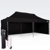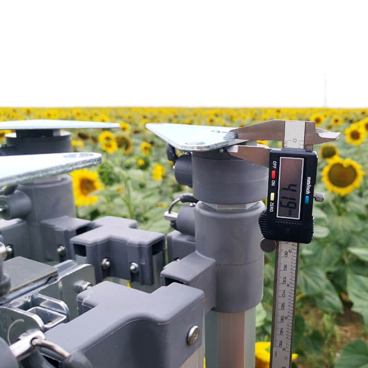 - Total højde: Takket være den imponerende højde på 355 til 395 cm vil dit telt være umuligt at overse, selv på lang afstand. Det sikrer stor synlighed af din præsentation og dit logo ved ethvert arrangement.