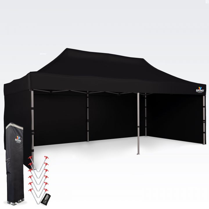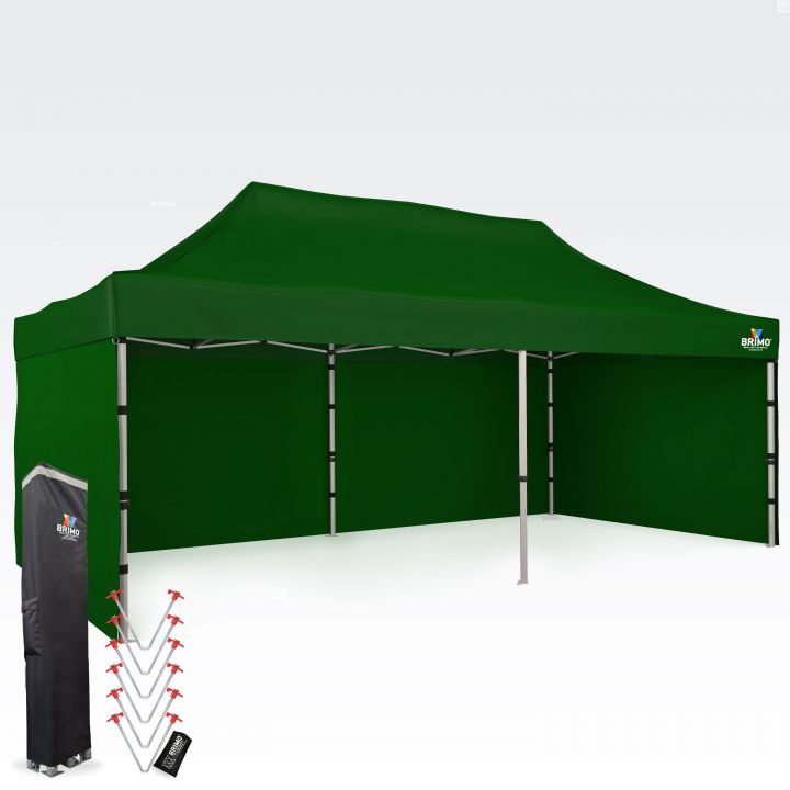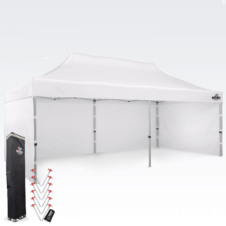 - Pakkens indhold: tag, 3 hele vægge, robust konstruktion, 12 forankringspløkker og beskyttelseshylster. Du får således et komplet sæt, der er klar til brug med det samme og til sikker opbevaring.