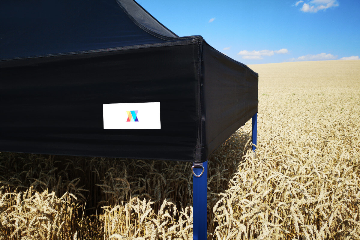 På dit telt laver vi reklamen, når som helst, også efter levering!