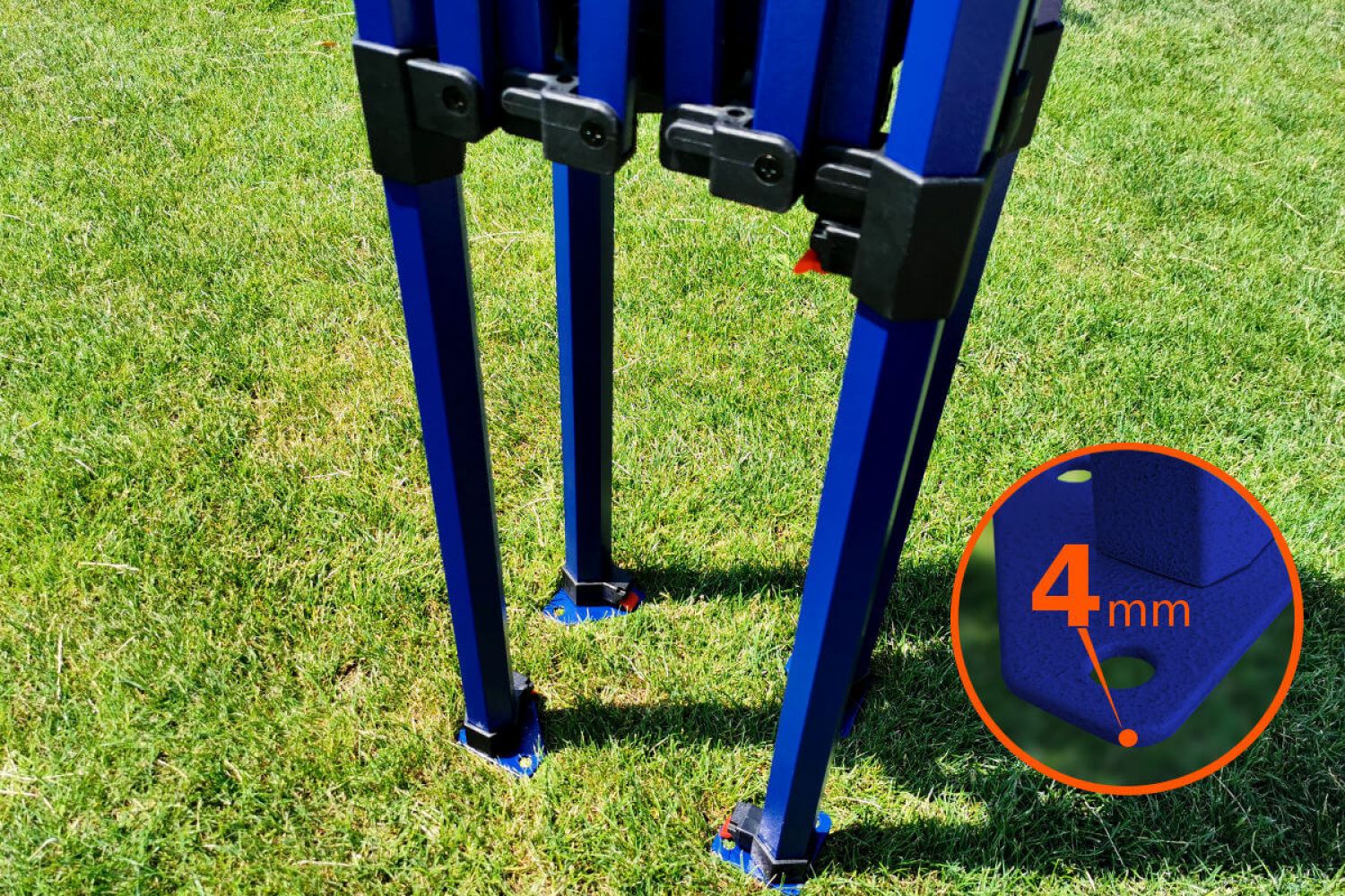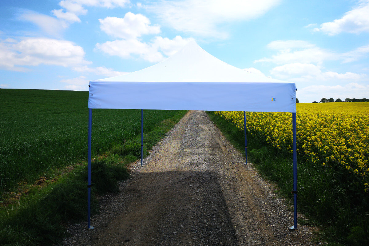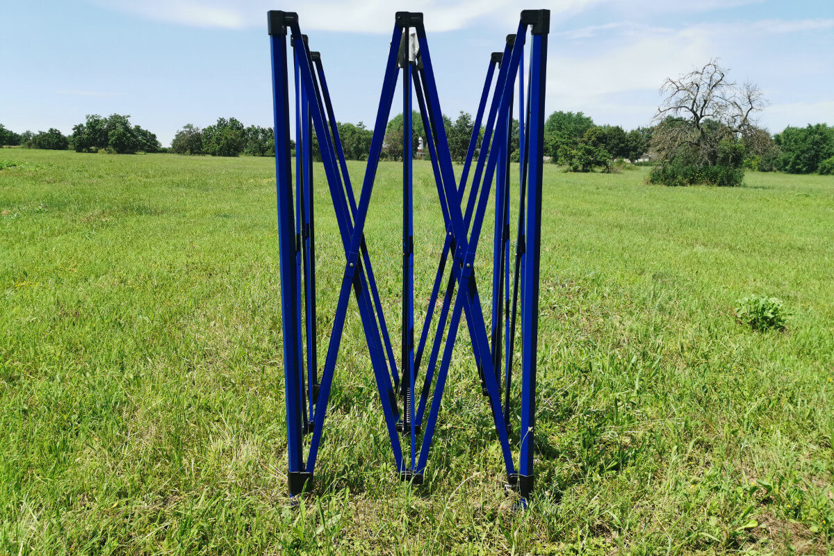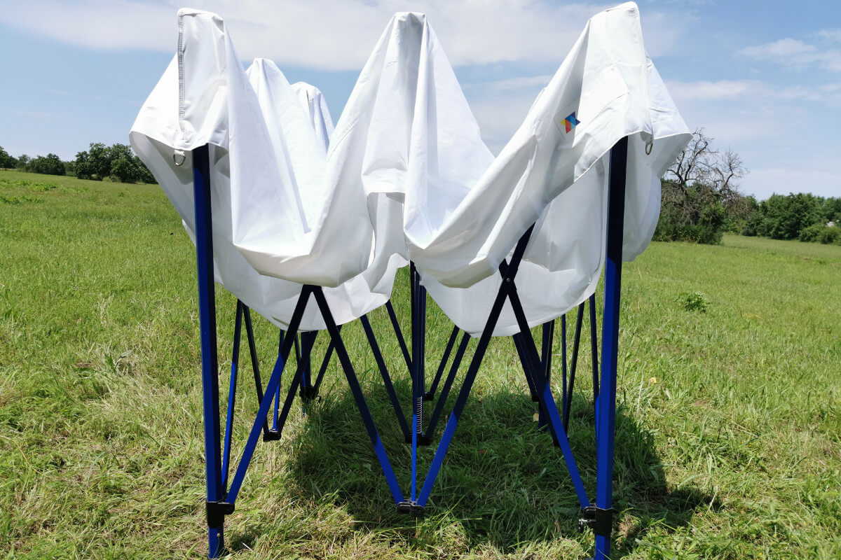 Den mørkeblå farve på konstruktionen giver teltet et elegant udseende. At skille sig ud fra konkurrenterne er en vigtig faktor for din forretnings succes. Teltet er populært på markedet på grund af sin fleksibilitet. Stærke stålrør sikrer maksimal stabilitet. Teltet sættes op og pakkes ned på rekordtid!