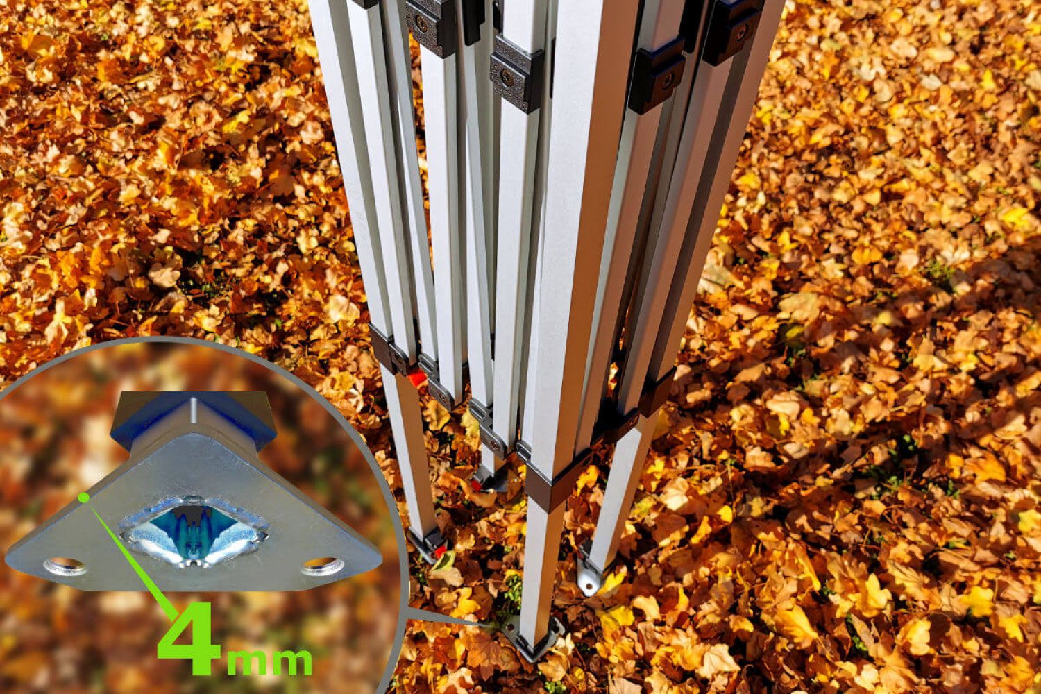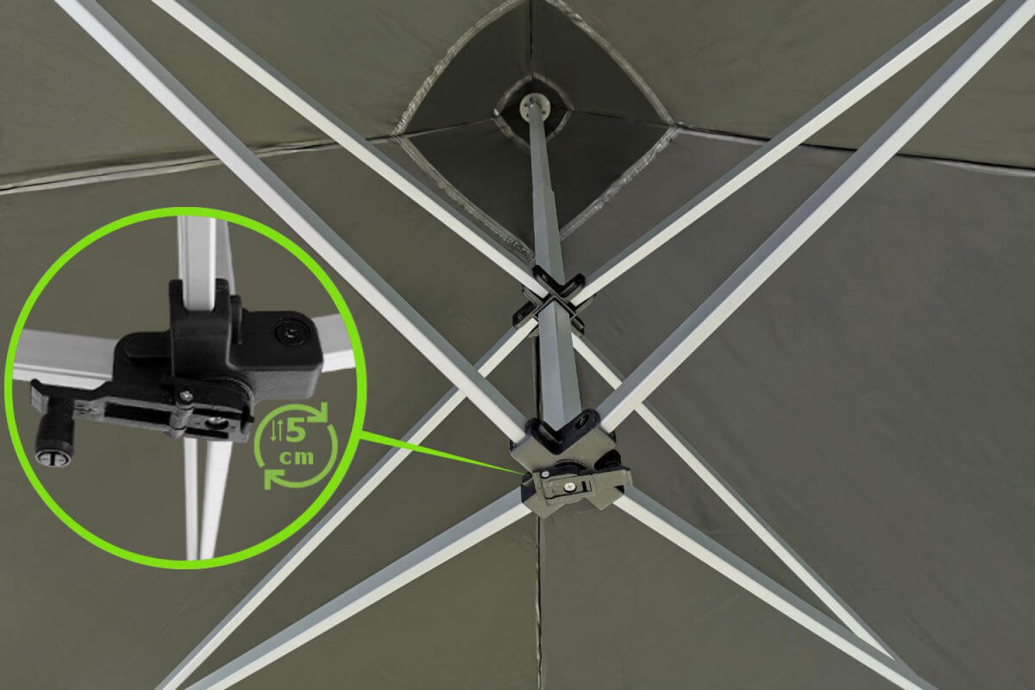 Takket være den lave vægt, som du vil sætte pris på under transport, kan teltet nemt flyttes til det ønskede sted. Den solide aluminiumsstruktur modstår vind op til 60 km/t. Ved kraftigere vindstød anbefaler vi at fjerne teltets vægge (hvis teltet har dem) og sænke teltets højde til det laveste niveau. Teltet kan bruges både indendørs og udendørs året rundt.