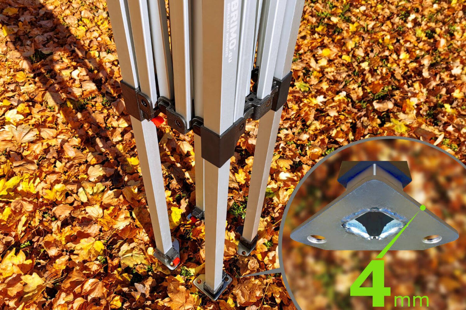 Disse foldbare telte med tryk 2x2m har stærke aluminiumsprofiler. Takket være den lette foldemekanisme kan teltet opstilles på få sekunder. Benene er udstyret med stærke fødder, som sikrer stabilitet og væggenes holdbarhed. Den skruefastgjorte automatiske mekanisme gør det nemt at slå teltet op og sammen. Takket være skrueforbindelser kan enhver del af konstruktionen udskiftes uden problemer.