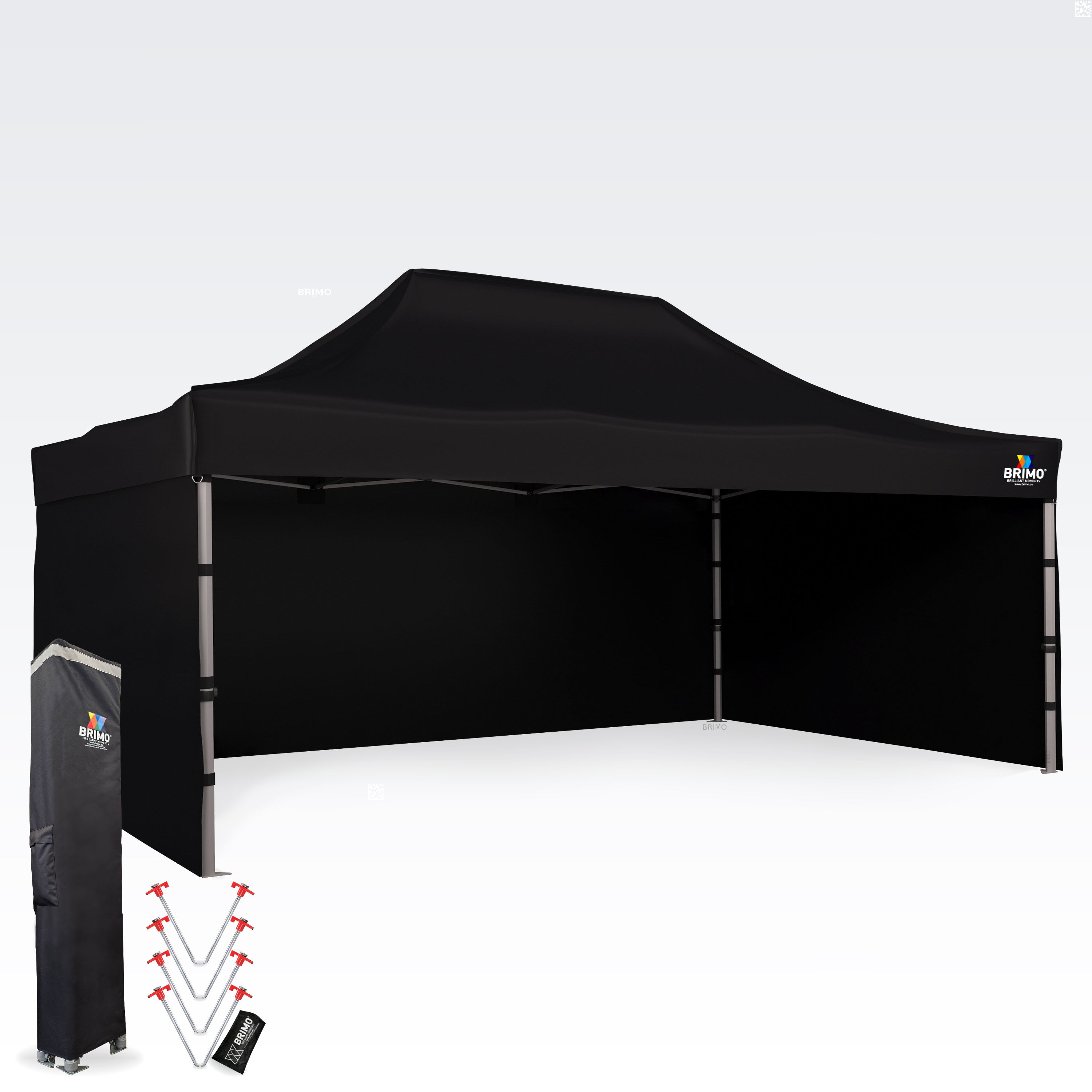- Total højde: Takket være den imponerende højde på 355 til 395 cm vil dit telt være umuligt at overse, selv på lang afstand. Det sikrer stor synlighed af din præsentation og dit logo ved ethvert arrangement.