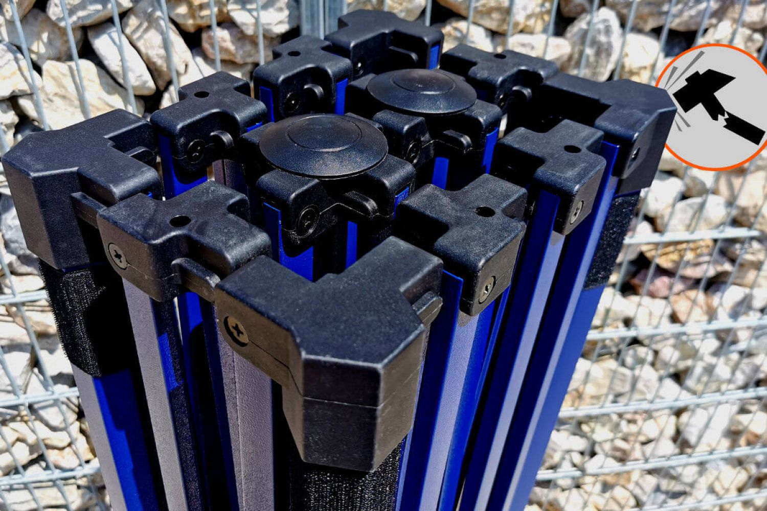 Vores innovative system har kvalitativt ændret vores udstillings-telte med tryk. Solid stålstruktur med forstærkede indvendige vægge og sekskantede ben sikrer stabilitet og ekstra ridsefasthed. De indvendige vægge er 1,1 mm tykke.