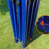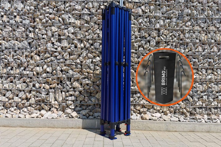 Den mørkeblå, kongeblå farve på konstruktionen er unik og enestående. Presenningsfarverne kan kombineres frit og integreres perfekt i omgivelserne efter egen smag. Har du din egen idé til teltets design, er det ikke noget problem. Vi laver teltet efter dine ønsker med den grafik, vi modtager.
