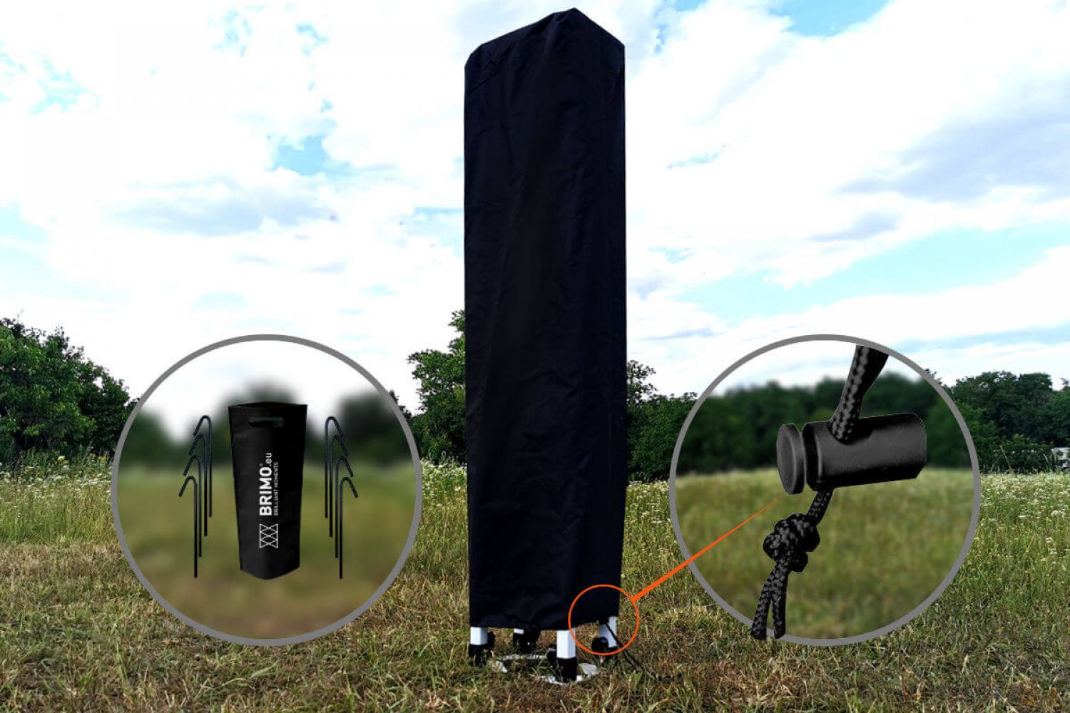 - Model Exclusive stål, kan bruges i vind op til 50 km/t. Ben med huller til forankring i jorden med pløkker - gratis!