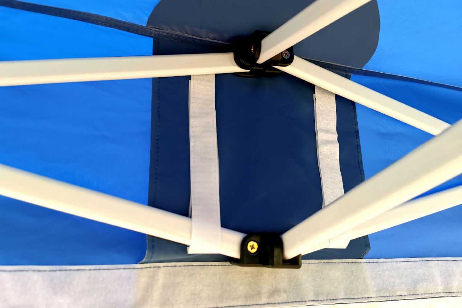 Sorte forbindelseselementer og konstruktion i elfenbensfarve er elegante og passer til enhver stoffarve. Sættet inkluderer tag i valgt farve, konstruktion, pløkker og beskyttelsesovertræk. Syv farver er tilgængelige. Vi tilbyder også mange tilbehør, populære er LED-lys til professionel belysning af produkterne.
